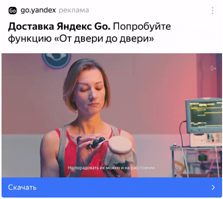 Кнопка действия добавляется в видеообъявления медийных кампаний или текстово-графические объявления в Единой перфоманс-кампании с изображением или видео. Она привлекает внимание и побуждает пользователей взаимодействовать с вашим объявлением. Кнопка дополняет объявление еще одной ссылкой. По клику на текст или видео пользователь переходит на одну страницу сайта, а по кнопке действия — на другую. Ссылки также могут совпадать.