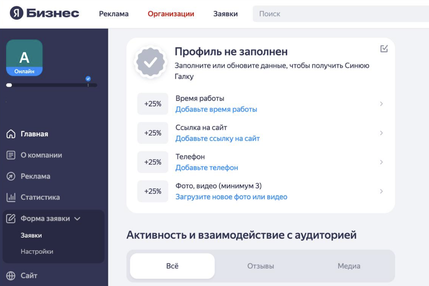 Чтобы добавить на лендинг форму заявки, карту с вашим адресом и отзывы, необходимо привязать организацию из Яндекс Бизнеса. Отзывы отображаются только для офлайн-организаций, которые есть на Яндекс Картах.