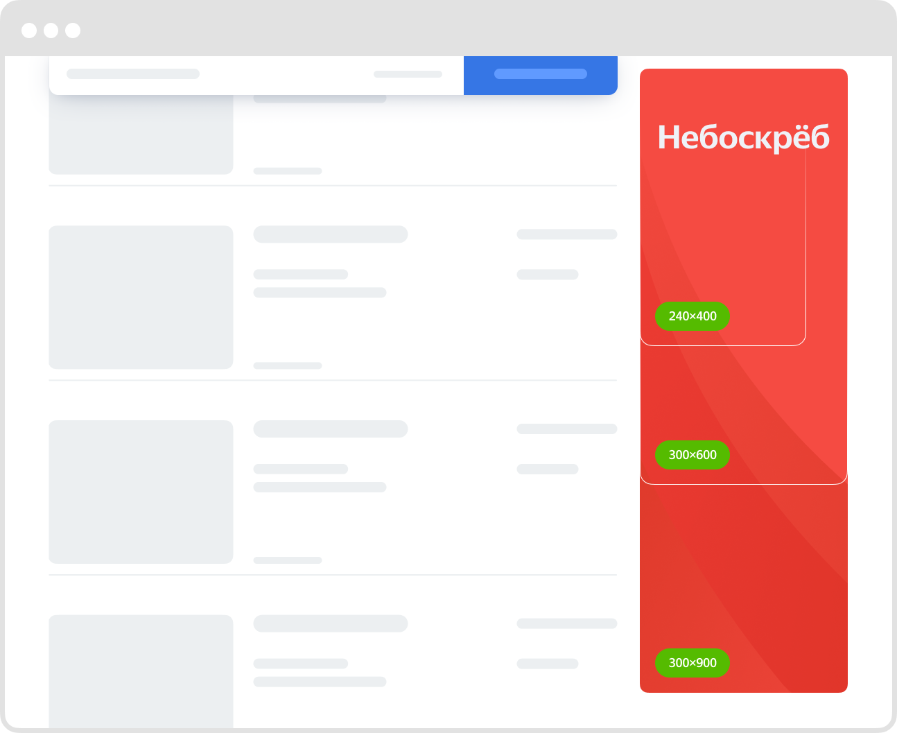 Доступны 4 варианта баннеров: 240 × 400, 300 х 600, 300 × 250 и 300 х 300. Загрузите креативы подходящих форматов, чтобы реклама хорошо смотрелась на всех устройствах и привлекала максимум пользователей.