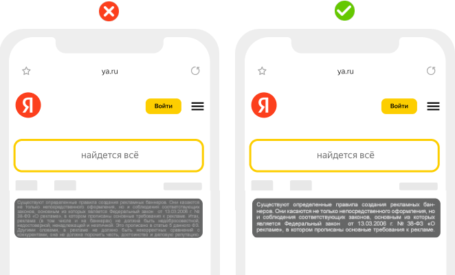 Расстояние от края баннера до текста должно быть не меньше 10 пикселей. Текст и элементы баннера не должны располагаться в сейфзонах.