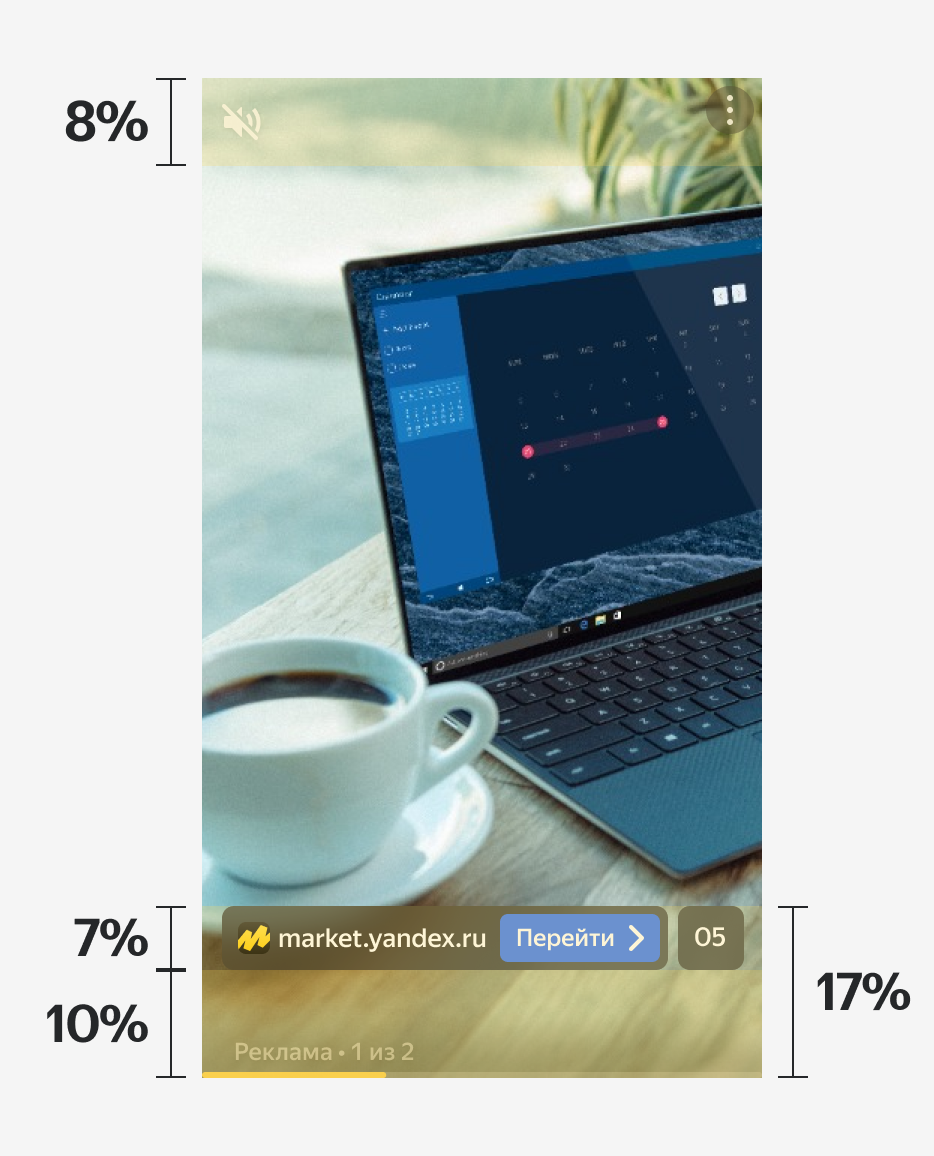 - Лучше размещать основной рекламный контент в центральной части видео, отступая 20% снизу.