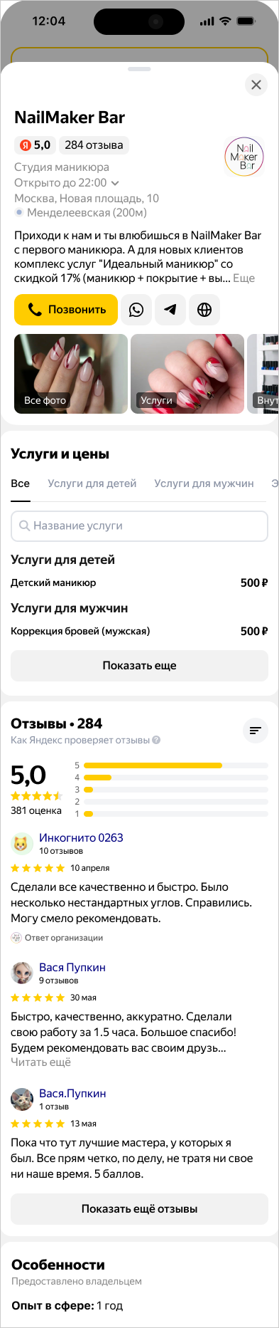 В галерее услуг могут быть показаны объявления с профилями компаний и частных мастеров, представленных на сервисах с предложениями услуг. Также могут быть показаны объявления организаций, деятельность которых связана с оказанием услуг и которые оплатили размещение.