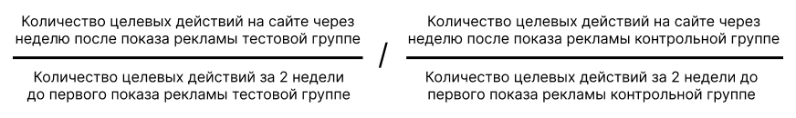 Из целевой аудитории кампании отбирается тестовая (90%) и контрольная (10%) группа. Тестовая группа включает пользователей, которые видели рекламу. Контрольная группа состоит из пользователей той же целевой аудитории, которым реклама намеренно не демонстрируется. Для создания контрольной группы используется виртуальный аукцион.