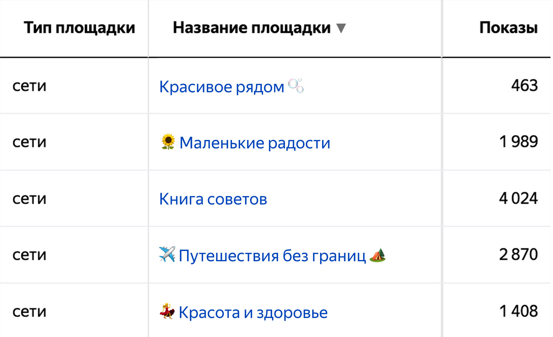 В отчете в столбце Название площадки отображаются все телеграм-каналы, в которых было показано ваше объявление. Чтобы посмотреть объявление перейдите по ссылке в нужный канал.