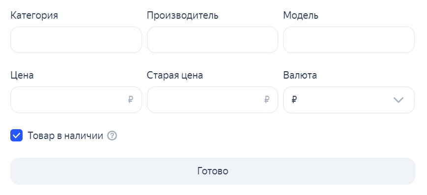 Вы можете добавить описание товаров вручную. Для каждого товара заполните карточку: