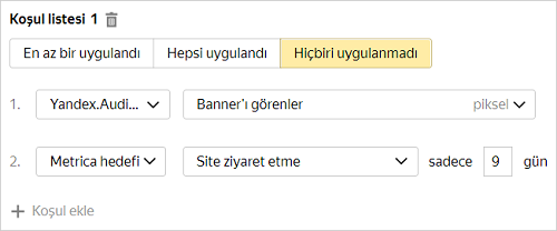 Markanızı henüz tanımayan yeni hedef kitle seçin. Reklamlarınızı gören ve siteyi ziyaret edenler için olumsuz bir koşul yapılandırın.