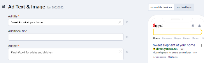 在 Yandex.Direct 中,可使用一种特殊工具利用大量关键词制作相似广告。 它们被称为模版。 使用模版,您可将关键词粘贴到标题、正文、网站链接、和/或每次显示此关键词的广告链接中。 这样,可以为每个关键词显示独特的广告文案。