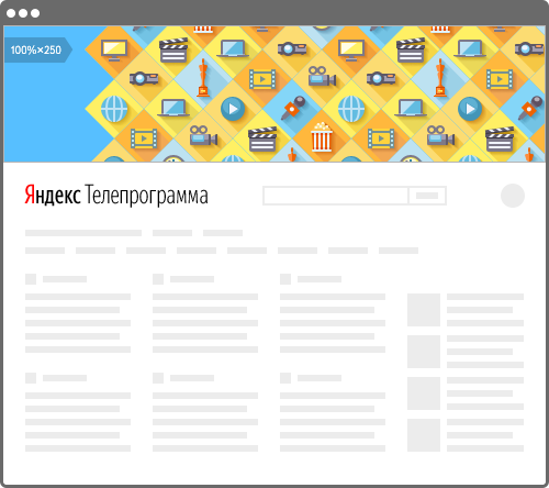 显示格式的横幅投放在 Yandex 服务的智能电视、桌面和移动版本中,例如 Yandex Video、Yandex Images、Yandex Music、Kinopoisk、Yandex TV Program、Auto.ru、Lessy 等以及 YAN 合作伙伴网站上。 广告牌被投放在服务页面的顶部中,占据整个屏幕宽度。