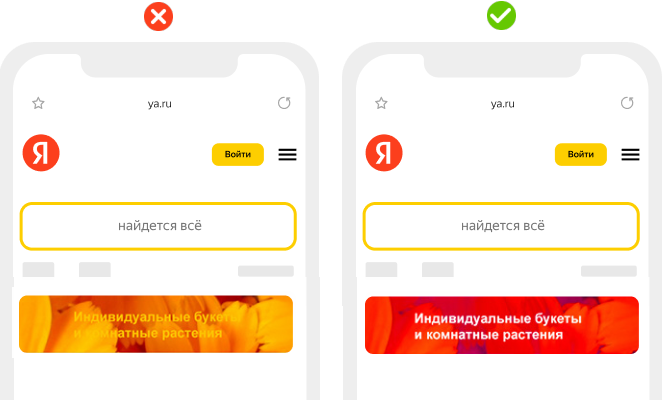 请勿使用黄色作为按钮或徽章颜色,因为标准 Yandex 页面设计元素使用这种颜色。 可接受使用 #F0E5AD 及以上色号的黄色。