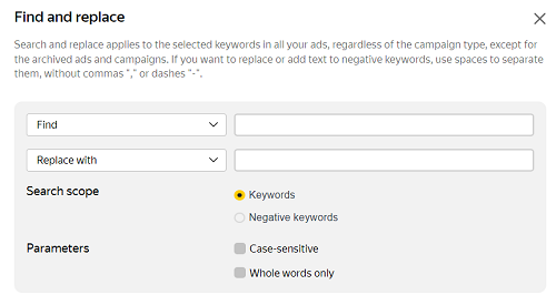 关键词挑选工具可以通过使用 wordstat.yandex.ru 服务中的 Yandex 搜索查询统计数据,帮助您为广告组扩展关键词以及否定词。