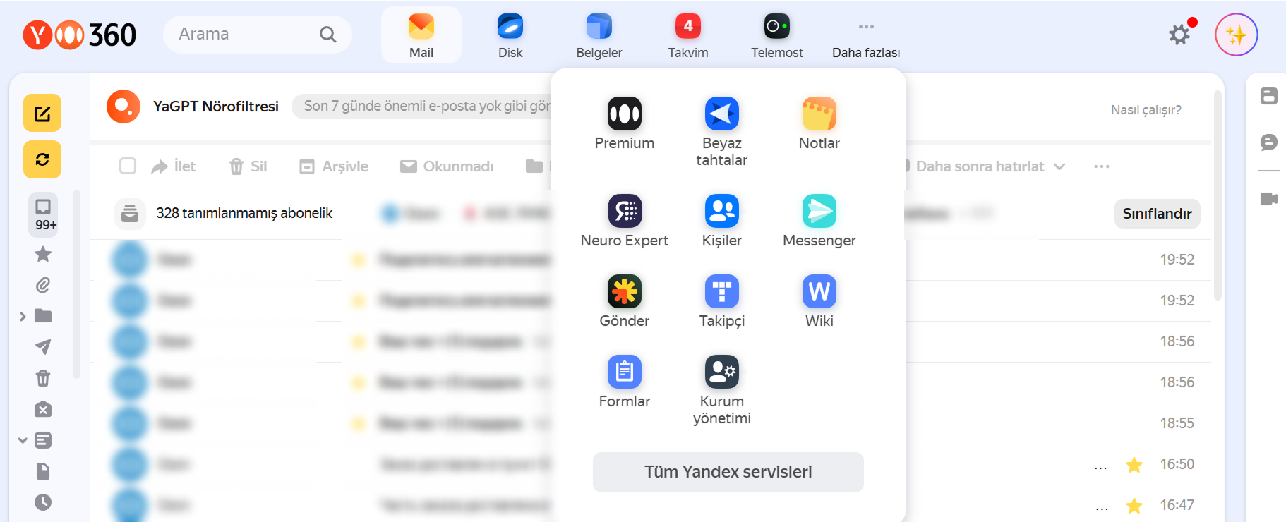 Yandex 360 tarifeler ile Yandex Mail’de daha çok özellikten yararlanabilirsiniz.