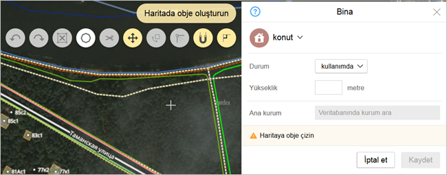 Objeyi düzenleyin: haritada geometrisini değiştirin ve/veya bir veya birkaç özniteliğin değerlerini değiştirin.