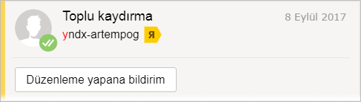 Objenin geçmişine bakarak istediğiniz düzenleyiciye herhangi bir objenin düzenlenmesiyle ilgili mesaj gönderebilirsiniz.