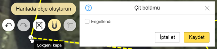 Çit ya da bahçe duvarlarının çizim ve düzenleme yöntemleri, Yandex Map Editor'deki tüm çizgi türü objelerin çizim ve düzenlemeleriyle büyük ölçüde benzerdir: