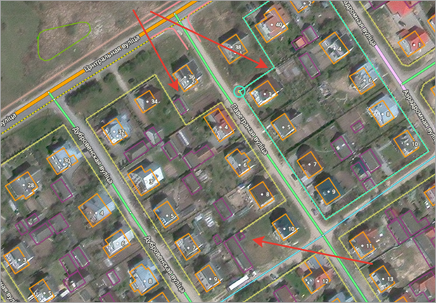 - Bahçe duvarı veya çit çizgilerini, bina çokgenleri üzerinden geçirmemek tercihlidir. Bahçe duvarının veya çitin bina yapısının (örneğin, kazıkların üzerinde bulunan bir evin) altından geçtiği veya binanın stilobatta bulunduğu durumlar bu kuraldan istisna sayılır.