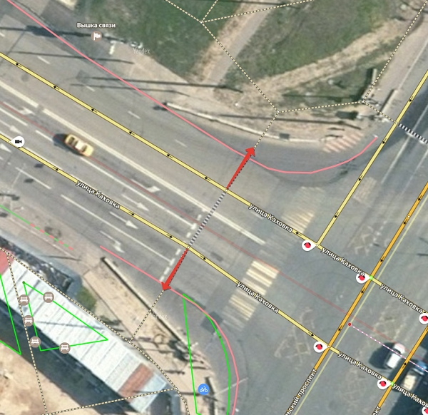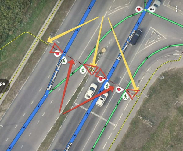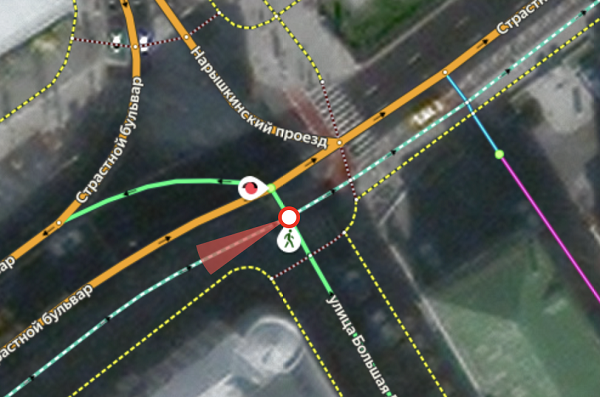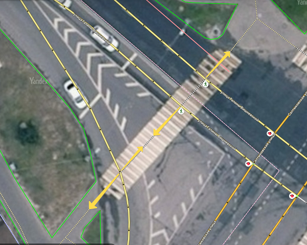 - Yandex Map Editor'de, yaya ve bisiklet trafiğini düzenleyen ve minimum iki sinyal veren trafik ışıkları