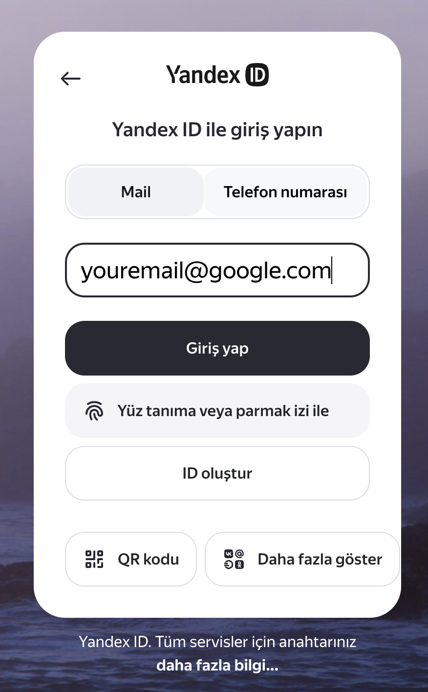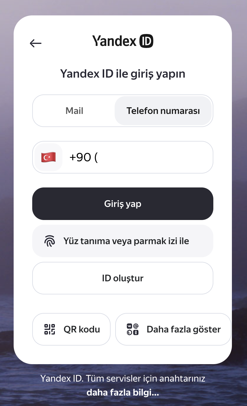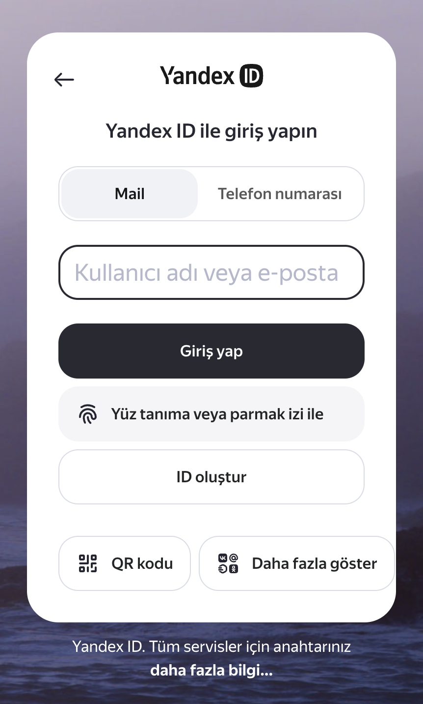 Servise erişim sağlamadan önce kayıt olmanız gerekmektedir. Yandex ID, tüm Yandex servisleri için birleşik bir hesaptır.