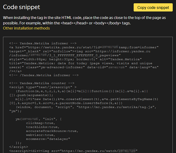 Yandex Metrica automatically collects data from your site, with no extra setup required, if you're already set up with Google Analytics Enhanced Ecommerce or Ecommerce (GA4) (including with the Global Site Tag), because it uses a compatible data format. In this case, skip step 5.