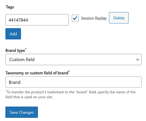 Custom field — In the Taxonomy or custom field of brand field, specify the name of the brand field.