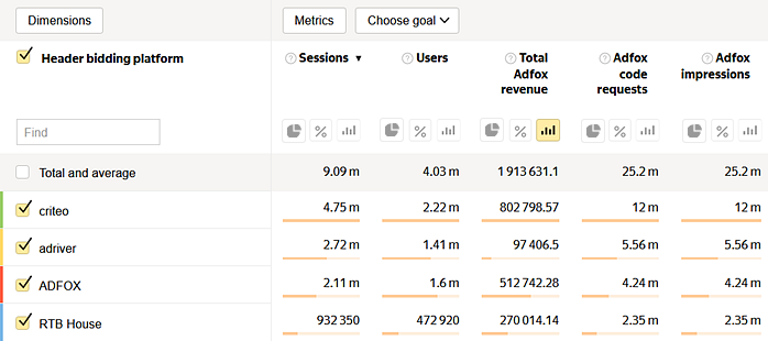 To view the report, go to Reports → Monetization → Adfox, header bidding.