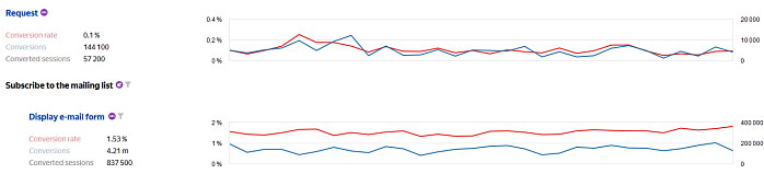 For a multi-step goal, the report contains statistics for each step. This report can help you understand which part of the path to the goal is causing difficulty for users.