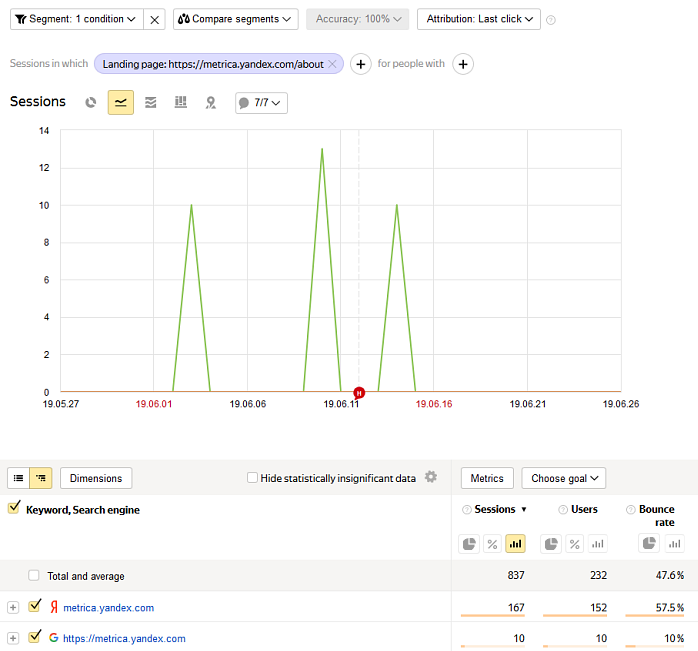 Yandex Metrica finds queries using the referrer and browser cookies and does not detect them if:
