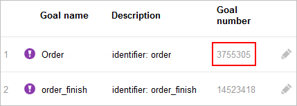 El número de objetivo. Especificado si esta acción fue el objetivo. Puede ver el número de metas en la interfaz de Yandex Metrica: vaya a la sección Configuración → Metas. |