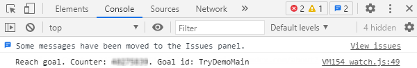O parâmetro _ym_debug=2 só irá funcionar se o novo snippet de código do Yandex Metrica estiver instalado no site. Se você estiver usando uma versão antiga do snippet de código ou o painel de depuração não aparecer, utilize o console do navegador.