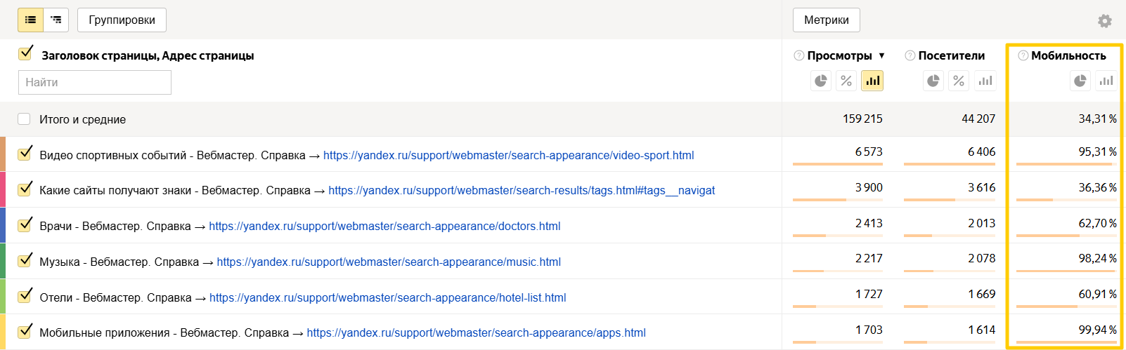 Для этого нажмите кнопку Метрики и выберите Мобильность.
