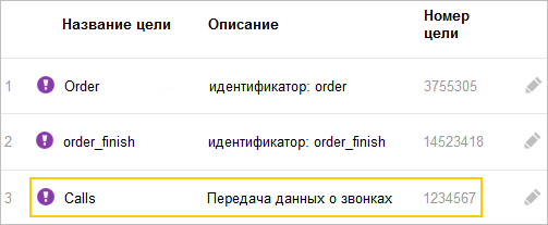 В Метрике звонки отслеживаются с помощью целей — при первой передаче данных от сервиса коллтрекинга создается специальная цель. Она отображается в Метрике на странице Цели в левом меню. Название и описание цели могут быть произвольными (указанными при передаче данных через API).