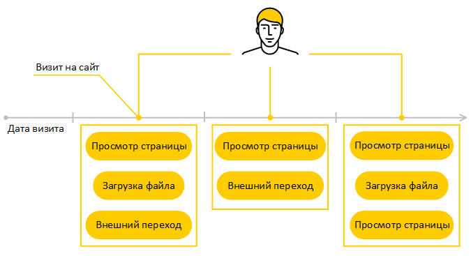 Данные, которые Метрика использует для формирования такого отчета, можно представить следующим образом: