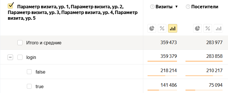 Собрать статистику о поведении авторизованных и не авторизованных посетителей