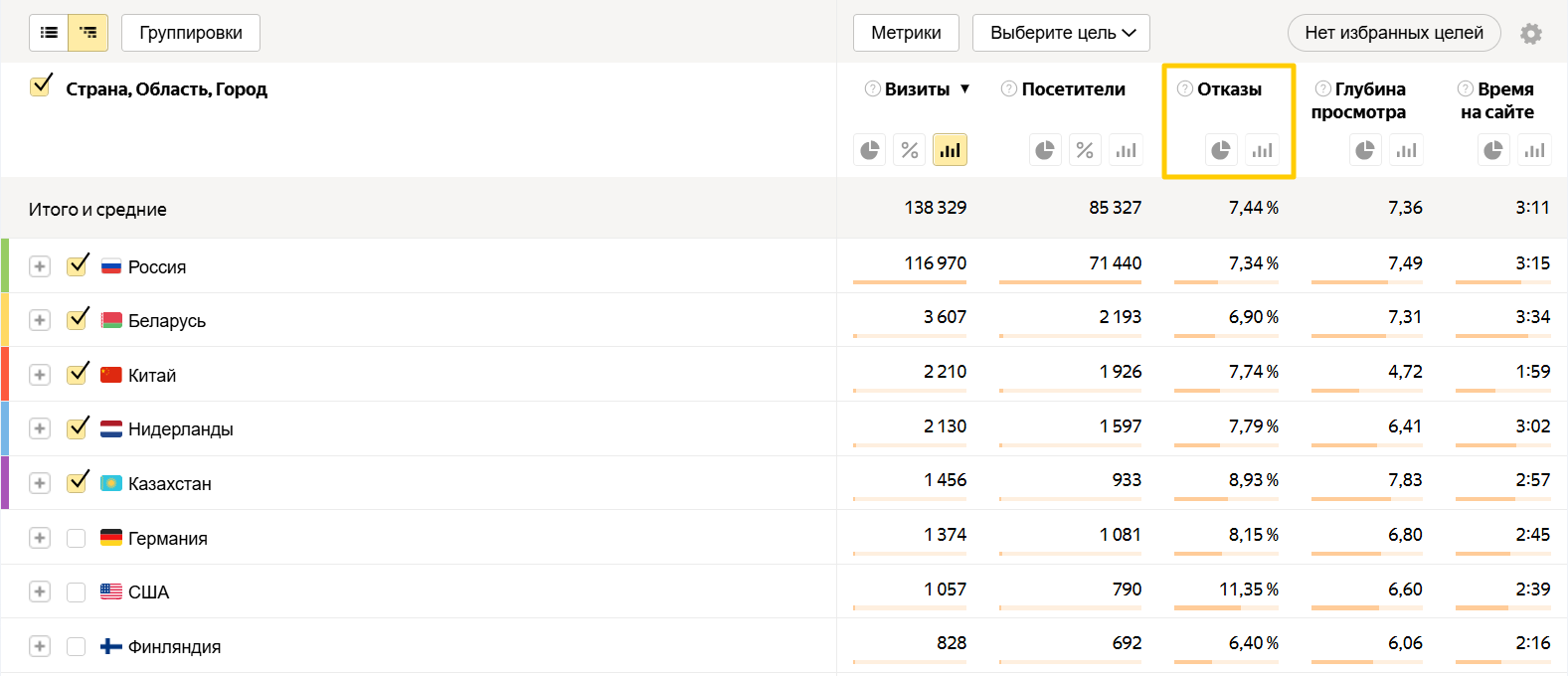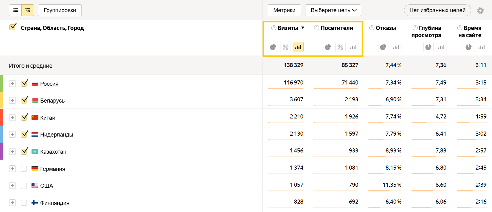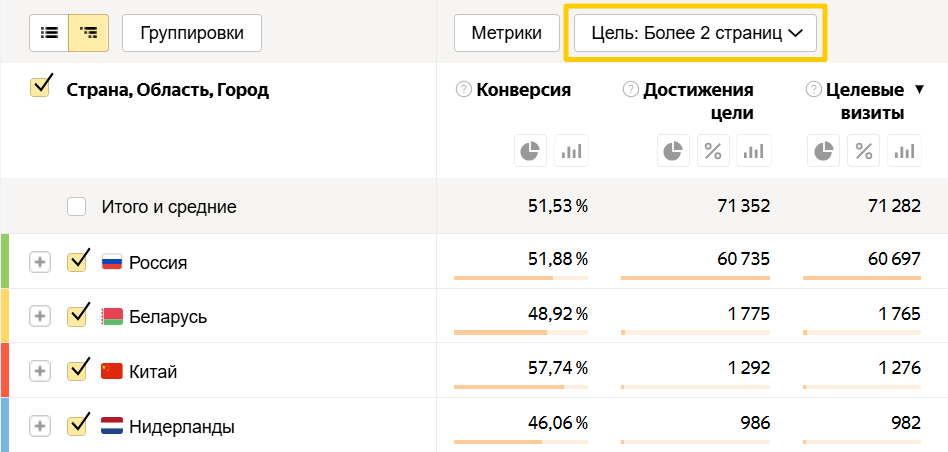 Проверить вовлеченность посетителей в разных регионах