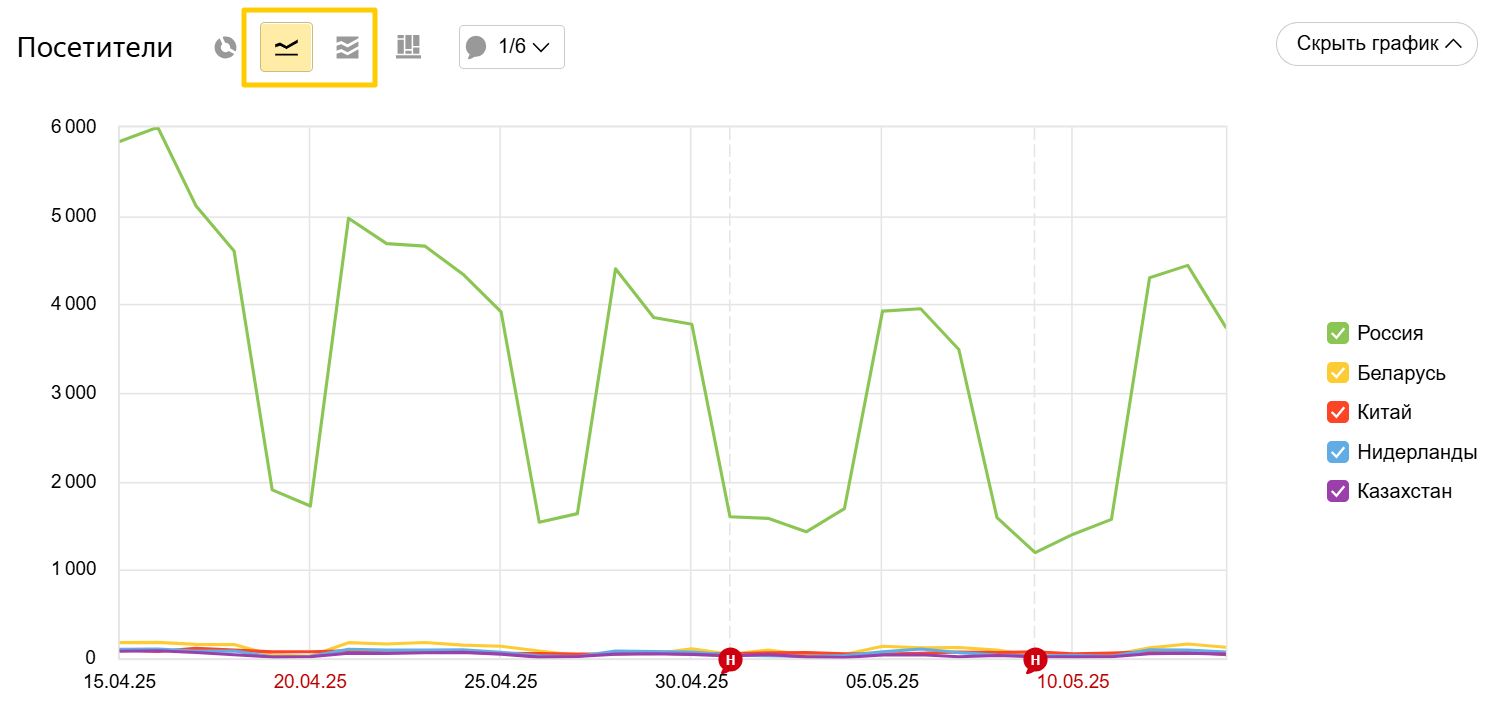 Отчет поддерживает все настройки, доступные в Яндекс Метрике.