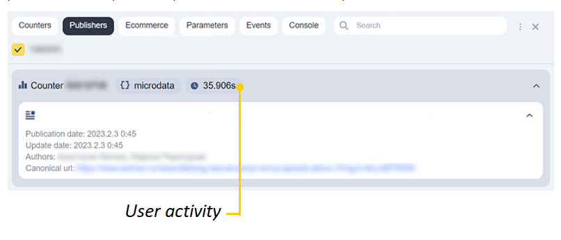 İşaretleme doğru ayarlanmışsa, Publishers sekmesindeki blokta işaretleme türü ve işaretlenmiş materyal hakkında bilgi görüntülenecektir. Detaylı veriler Console sekmesinde görüntülenebilir.