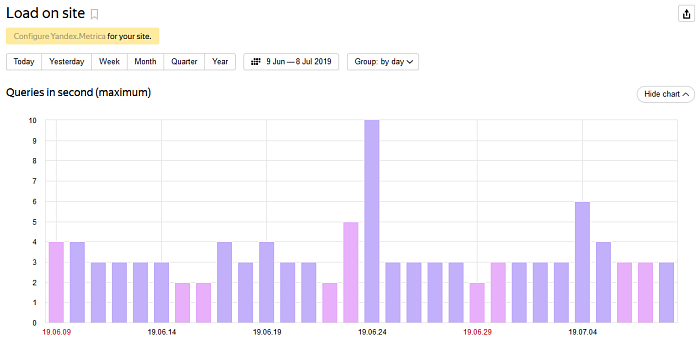 Tablo, Yandex Metrica sayacının sitedeki robot eylemleri hakkında yaptığı veri gönderimlerinin sayısını (Oturum Kaydı veri gönderimleri hariç olmak üzere) gösterir.
