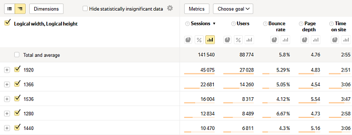 Raporu görüntüleyin: Raporlar → Teknolojiler → Ekran çözünürlükleri.