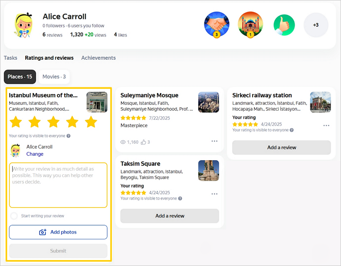 If you haven't left a review, press Add a review, change the rating, and write a review. Tap Submit.