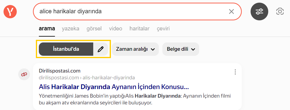 simgesine tıklayın. - Bölge ismi girin. Arama sonuçlarınızda yalnızca seçilen bölgeye ait belgeler kalır.