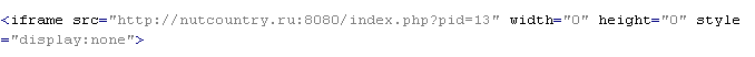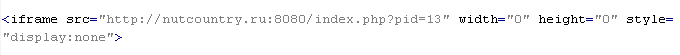 This verdict means that the page contains an <iframe> tag with the width and height attributes set to values from 0 to 2, or JavaScript code that, when executed, adds this tag to the page. The src attribute of the tag contains a domain name that malware is distributed from. The tag contains additional attributes: frameborder=0, style="VISIBILITY:hidden", style="display:none".
