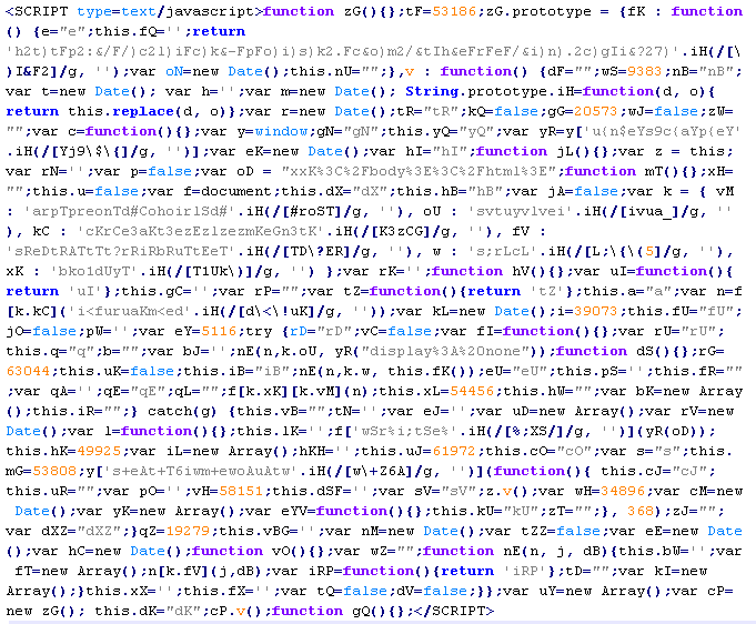 Example of malicious code that is issued the verdict Troj/JSRedir-GS: