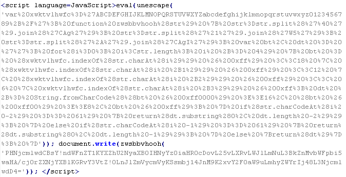 Troj/JSRedir-DL kararının verilmesine yol açan kötü amaçlı kod örneği: