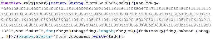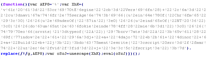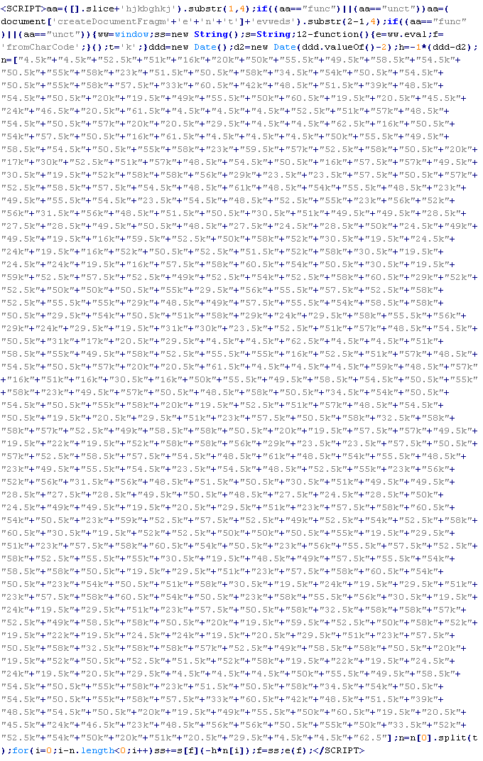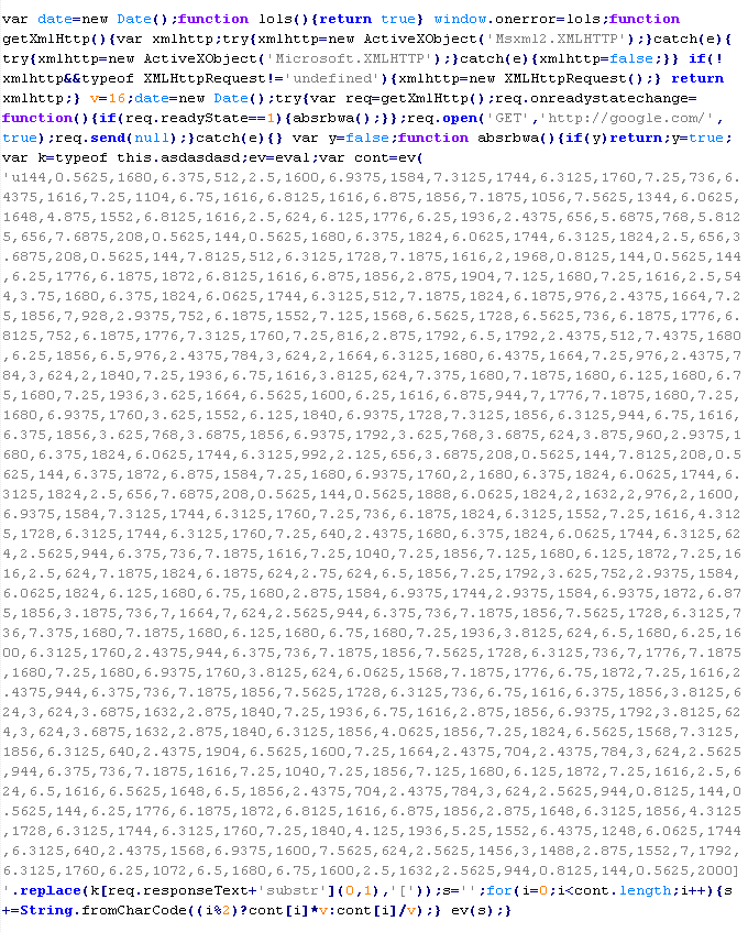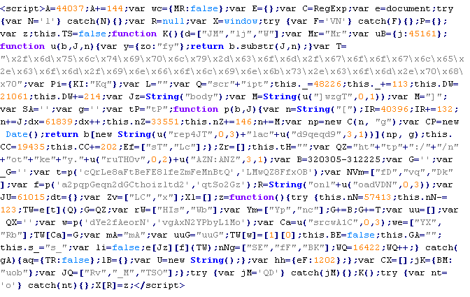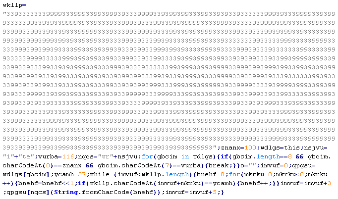 Troj/ObfJS-O kararı verilen kötü amaçlı kod örneği:
