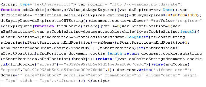 Yandex/MalTds kararı verilen kötü amaçlı kod örneği: