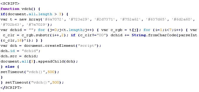 Troj/JSRedir-DC kararının verilmesine yol açan kötü amaçlı kod örneği: