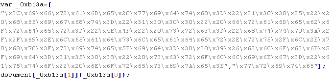 Troj/JSRedir-HZ kararının verilmesine yol açan kötü amaçlı kod örneği: