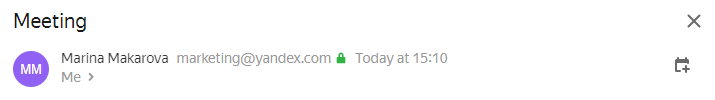 Yandex Takvim’de etkinlik oluşturmak için e-postayı açın ve sağ üst köşedeki takvim simgesine basın.