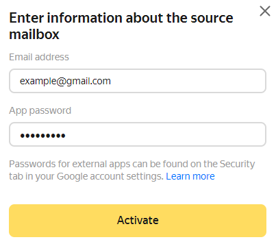 Takip eden adımları Gmail’in ve Yandex Mail’in tam sürümlerinde yerine getirin (sitede, mobil sürümde veya mobil uygulamada değil).